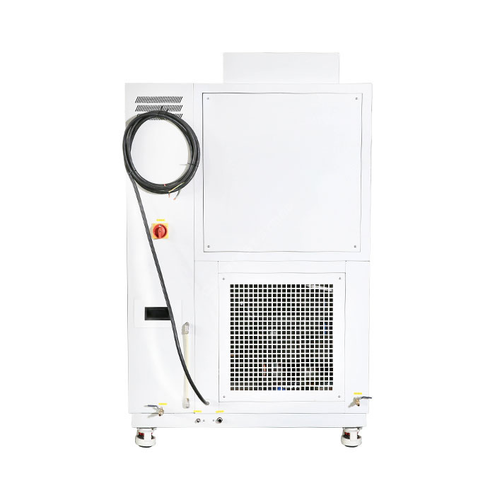 Bahagian belakang ruang kerja adalah saluran udara, bahagian atas saluran udara adalah saluran keluar, bahagian bawah adalah saluran keluar udara kembali, dilengkapi dengan motor bekalan udara aliran paksi panjang, bilah kipas emparan, pemanas dan a penyejat penyejukan di dalam.
